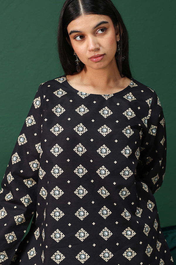 You’re heading out for work, and you need something that says you’re to be taken seriously because you are the boss okay? You naturally grab this shalwar qameez from the Jugnoo line because today you’re going for clean cuts and classic shapes adorned with colourful motifs hitting a new level of chic and practically screaming ‘I have my life together, do you?’
