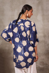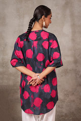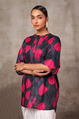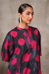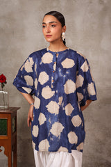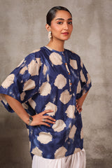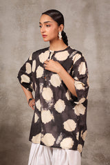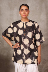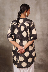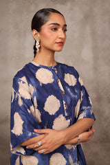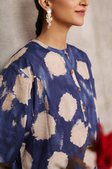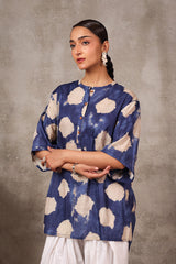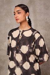A dotted textured printed kurta , designed with a band-round neckline and a front placket adorned with delicate buttons, making it a versatile piece for refined styling.