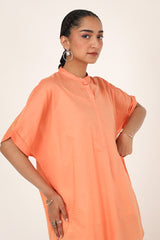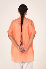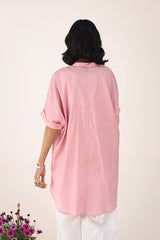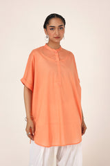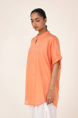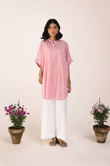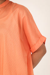 A solid-hued, dotted-textured top featuring a band neckline and delicate button detail on the front placket. The intricate lace adorns the sleeve hems, adding a touch of finesse, while the rounded shirt hem enhances its effortless charm. Can be paired with any Generation Bottoms for a versatile look.