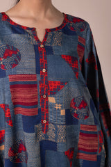 Classic-fit printed shirt with a round neckline and V-slit, adorned with buttons along the front placket. Paired with complementary printed culottes.