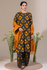 Classic-fit printed shirt with a round neckline and buttoned front placket. Paired with printed farshi shalwar for a coordinated look.