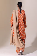 A classic-fit printed shirt with a round neckline and V-slit, adorned with dori tassel detailing. Finished with a rounded hem and paired with a matching printed classic-fit shalwar.