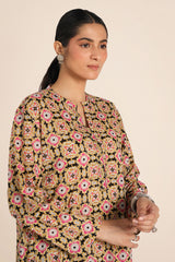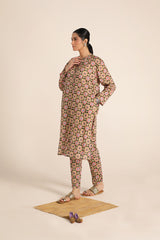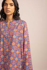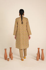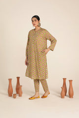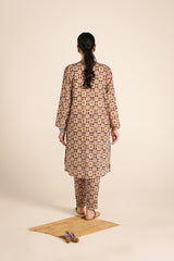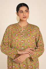 A straight-fit printed kurta featuring a round band neckline with a refined V-slit for a touch of grace. The effortless silhouette offers comfort and grace. Paired with matching printed classic cigarette pants for a seamlessly coordinated look.