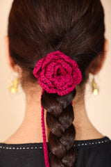 Hand-crocheted floral hair tie crafted with care, featuring a textured bloom and tie-up detail to accent everyday styling.