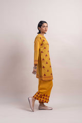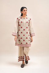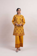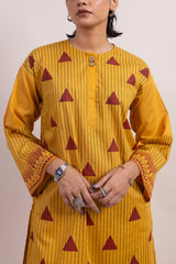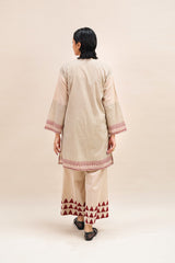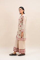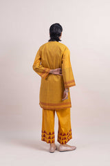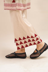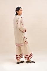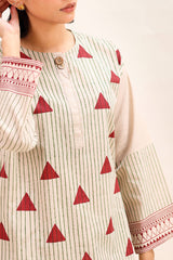 A classic-fit shirt features traditional hand block printing with a round neckline and decorative button accents. ItÕs paired with matching block-printed culottes, creating a coordinated look full of artisanal charm.