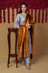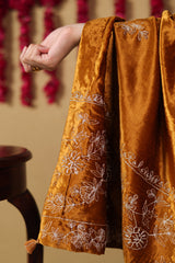 Crafted from rich, plush velvet fabric, this shawl is adorned with Marorri taanka embroidery, adorned with side tassels and with velvet facing. Perfect to pair with formal outfits.
