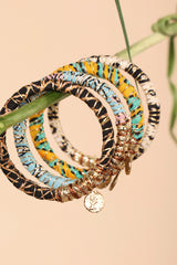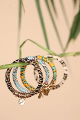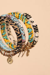 Multi bangles with coin detail, made from sustainable surplus fabric