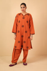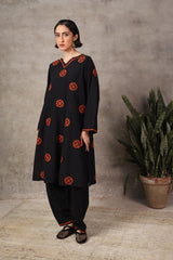 Hand embroidered, loose fit kurta. Paired with classic fit plain shalwar.
