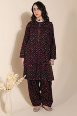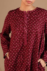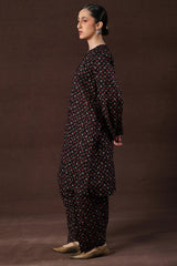 A classic-fit printed shirt with a round neckline and a buttoned front placket, finished with side pockets for added comfort. Paired with a matching printed classic-fit shalwar for a coordinated look.