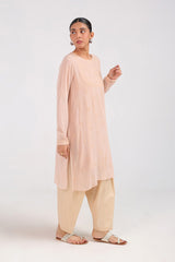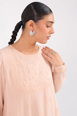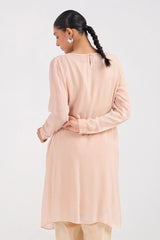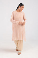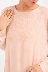 A hand-embroidered shirt with a round neckline, featuring delicate embroidery with scattered motifs all over and detailed work on the sleeve hems. Comes with an inner for added comfort and ease.