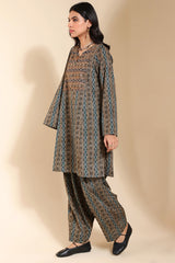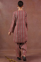 A classic-fit A-line printed shirt with a round neckline and V-slit, adorned with delicate embellishment. Paired with a matching printed classic-fit shalwar for a fresh and sophisticated look.