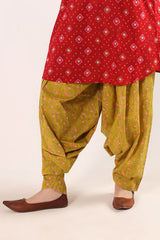 A vibrant printed cowled shalwar that pairs effortlessly with any Generation kurta, blending traditional charm with a modern, colorful flair.