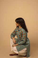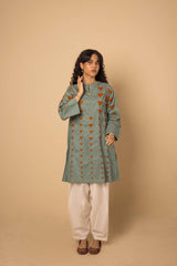 A loose fit kurti with band neckline and all over motif detail.