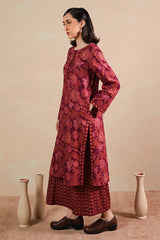 A printed straight-fit shirt with a round neckline and buttoned front placket. Side pockets add functionality and ease. Paired with complemented printed culottes.
