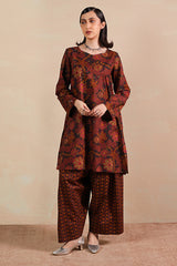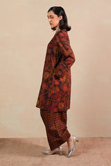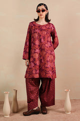 A printed relaxed-fit shirt with side pockets for functionality and ease. Paired with complemented farshi shalwar featuring stitching detail on the ankle hemline.