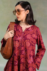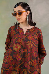 Warm in colors, this classic-fit A-line shirt features a round neckline with a V-slit adorned with subtle mukaish detailing along the front slit. Paired with complemented culottes.