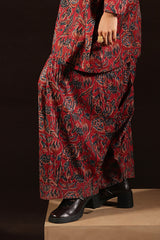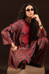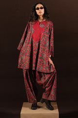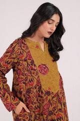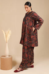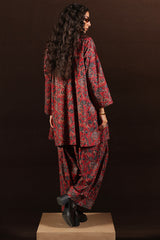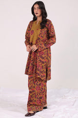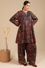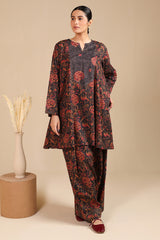 A relaxed-fit printed paneled shirt with round and V-neckline, featuring side pockets for functionality and ease. Paired with matching printed farshi shalwar with stitching detail on the ankle hemline for a coordinated, stylish look.