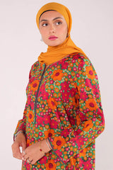 A classic-fit printed shirt with a round neckline and V-slit, adorned with subtle lace on the placket and sleeve hems. Paired with matching printed classic-fit shalwar featuring stitching detail on the ankle hemline for a coordinated, stylish look.