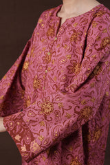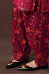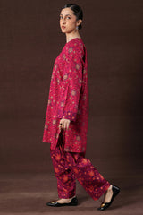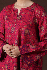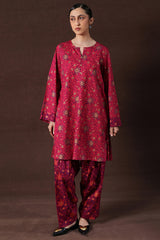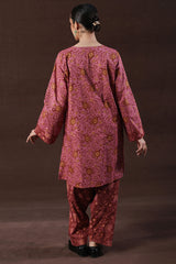 An easy-fit printed shirt with a round neckline and V-slit, adorned with delicate gota detailing along the front slit. Paired with a classic-fit printed shalwar for a coordinated and graceful look.