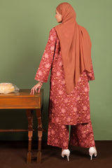 A classic-fit printed shirt with round and V-neckline, adorned with delicate stitching details on neckline and sleeve hems. Paired with matching printed culottes for a coordinated, stylish look.