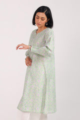 A breezy, paneled hand block-printed shirt with a round neckline and V-slit, adorned with delicate stitching and mukaish detailing on the front. Soft pleats on the sleeves add a gentle touch. Pair it with any Generation bottoms for a graceful everyday look.