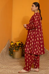 Printed classic-fit shirt designed with a square neckline and an easy silhouette. Paired with a matching printed classic-fit shalwar for a cohesive look.