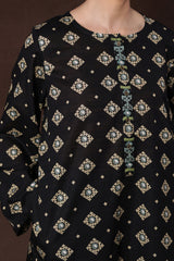 A vibrant Ajrak-printed short shirt with a round neckline and front button placket, paired with classic printed culottes for a chic, coordinated look.