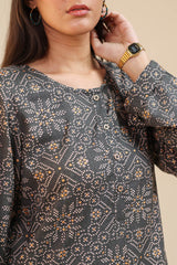 Classic-fit printed shirt with a round neckline and buttoned front placket, finished with a round shirt hem. Paired with a matching printed classic-fit shalwar.