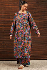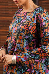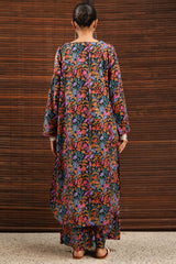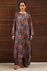 Classic-fit printed shirt with a square neckline adorned with bead detailing along the neckline and embroidered detailing along the sleeve hems. Paired with matching printed culottes.
