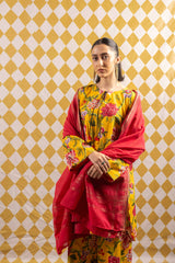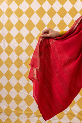 A solid-hued dupatta featuring a golden denier border for a touch of elegance, finished with delicate bead embellishments on the corners for subtle sparkle.