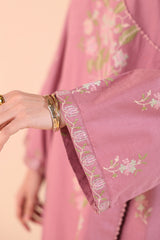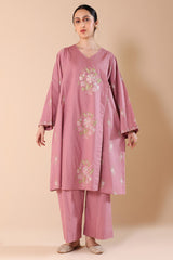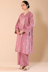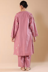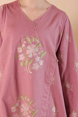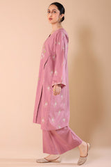 Embroidered angrakha-style kurta adorned with delicate crochet detailing and button accents. Paired with classic culottes for a refined look.