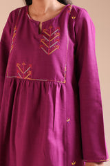 Embroidered classic-fit flared shirt designed with a round neckline and a subtle V-slit, adorned with delicate embroidered detailing throughout. Paired with a classic pegged shalwar.