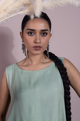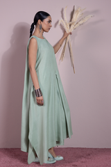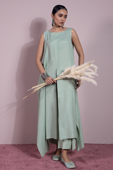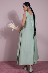 A luxurious flared silhouette with a front slit and embroidered detailing at the back. The design includes a back slit for graceful movement. Paired with straight-fit trousers for a refined look.