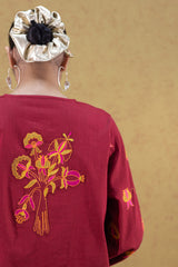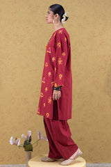 Embroidered classic-fit shirt with playful tassel detailing at the neckline and delicate stitch accents on the sleeve hems. Paired with a classic-fit shalwar for an elegant look.