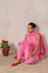 A classic-fit embroidered kurta with a V-neckline and bead embellishments. Delicate embroidered motifs with aina art enhance the design, while bead details adorn the shoulders. Paired with a classic-fit shalwar with button details at the ankle, the look is completed with a solid dupatta featuring denier gold borders and frill edges.