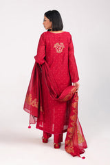 A jacquard embroidered shirt with a round neckline and V-slit, adorned with delicate embroidery and subtle sequin accents. Paired with straight-fit trousers and a soft inner for added comfort and ease. Style it with the jacquard dupatta, finished with tassel detailing, for a festive and elegant look.