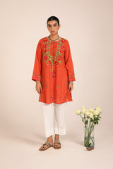 A handcrafted Ralli applique shirt with a keyhole neckline and dori tassel details. Finished with applique work and embroidered booti motifs on the sleeves. Can be paired with any Generation lowers for a complete cohesive look..