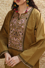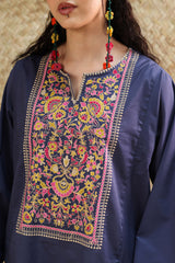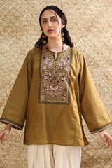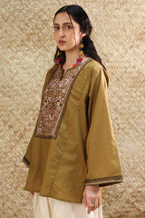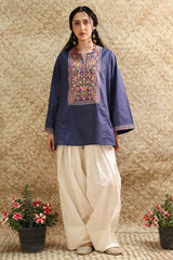 Soft embroidered paneled kurti designed in a relaxed silhouette, adorned with vibrant floral embroidery. Finished with wide sleeves detailed in coordinating embroidered borders. Style it with your preferred Generation bottoms.