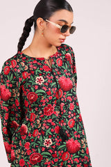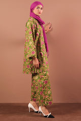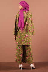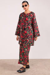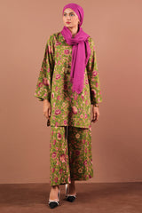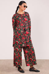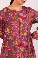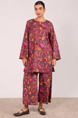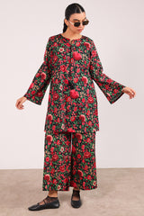 A classic-fit printed shirt with a round neckline and keyhole detail, adorned with tassel detailing. Paired with matching printed culottes for a coordinated, stylish look.
