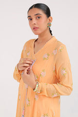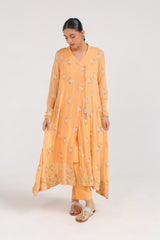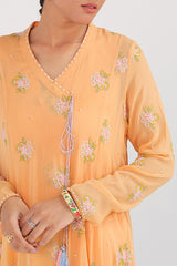 An embroidered flared angrakha adorned with tassel detailing and delicate motifs enhanced with beadwork. Paired with straight-fit trousers, it comes with an inner for added comfort.