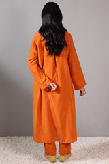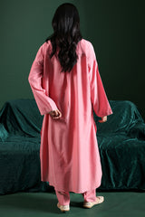 An embroidered classic-fit shirt with a low band neckline and floral embellishments along the front slit. Finished with a round shirt hem and paired with straight-fit trousers.