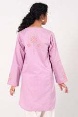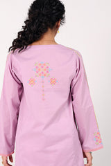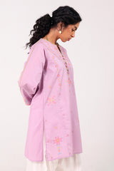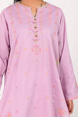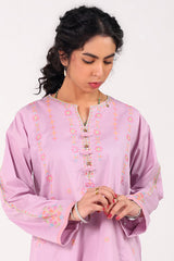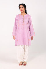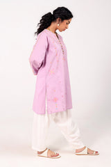 A classic-fit paneled hand-embroidered shirt with a round neckline and V-slit, adorned with bead and tassel detailing. Paired with a classic-fit shalwar.
