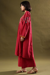 Hand-crafted shirt adorned with intricate tukri work and refined aina accents. Designed in a relaxed, fluid silhouette with soft gathers. Paired with coordinated culottes for an understated yet elevated look.