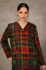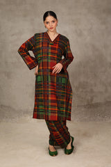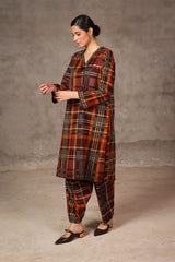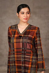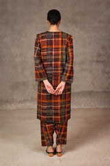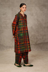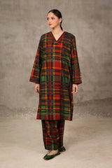 A loose fit printed shirt with V neckline and tassel detailing at the front. Paired with matching printed shalwar.