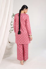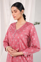 A relaxed-fit foil printed kurta with a V-neckline, detailed with fine stitching along the neckline. The front placket is adorned with gleaming buttons, adding a subtle yet elegant shine. The kurta is enhanced with golden foil accents for a touch of glam. Paired with matching printed culottes for a coordinated, glamorous look.