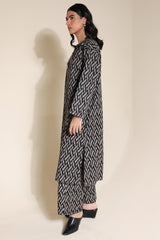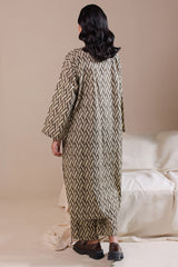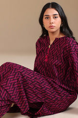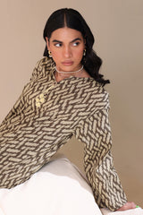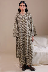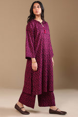 A classic fit printed kurta with a round neckline and V-slit, adorned with playful tassel detailing. Paired with matching printed culottes.
