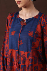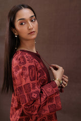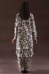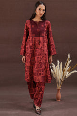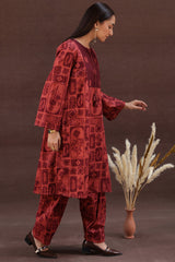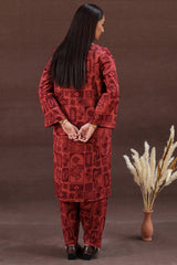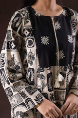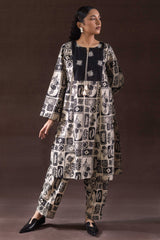 A classic-fit printed shirt with a round neckline adorned with tassel detailing. Paired with a matching printed classic-fit shalwar for a coordinated look.