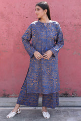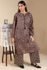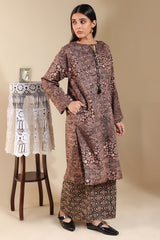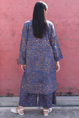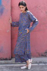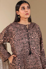 A classic-fit printed shirt with a round neckline and V-slit adorned with tassel detailing. Featuring side pockets and paired with printed culottes.