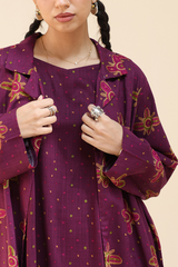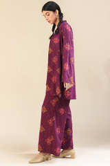 A classic-fit printed shirt with a round neckline and sleeveless cut, paired with printed culottes. The co-ord set is styled with a front-open printed collared shirt for a chic, layered look.