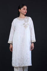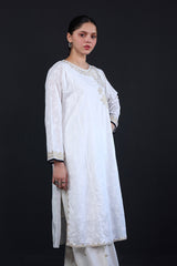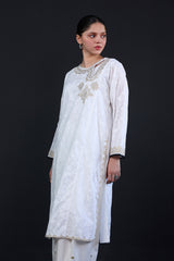 All over Jaal embroidered kurta with golden zarii applique details on neckline, sleeves and sides.
